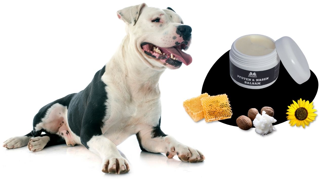 Der Bull&Bully Pfoten-Nasen-Balsam hilft deinem Hund dabei, die sensible Haut der Pfoten und Nase sanft zu beruhigen, schonend zu pflegen und zusätzlich zu schützen. Gleichzeitig ist die natürliche Rezeptur besonders hautfreundlich und damit perfekt für empfindliche Hundepfoten und -nasen geeignet. Ein optimaler Pfoten und Nasenschutz im Winter und im Sommer.